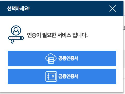 다시 한번 공동인증서(금융인증서)나 간편 인증을 진행합니다.