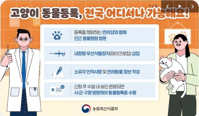- 반려묘는 의무는 아니지만, 등록하면 실종 시 찾을 가능성이 높아집니다.