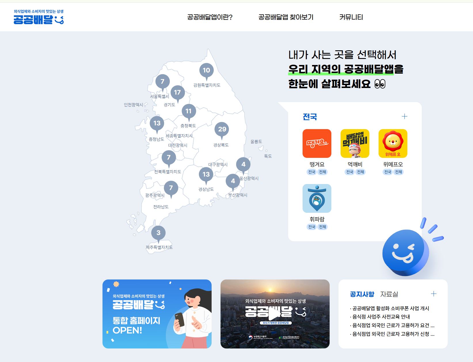각 지역별 공공배달앱 확인은 공공배달 통합포털에서 가능합니다.